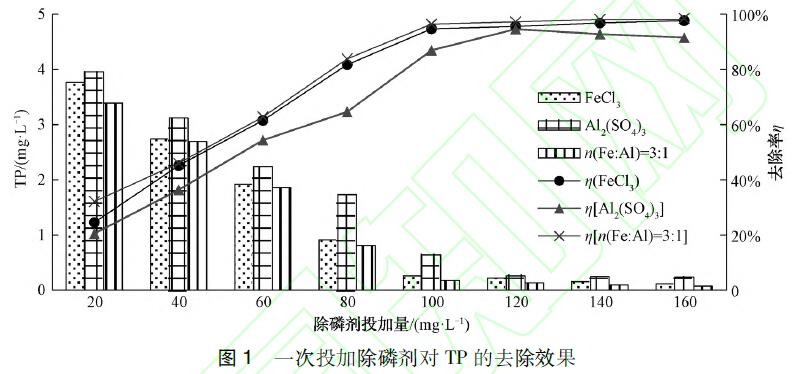 一次投加:在混凝開始之前按照20、40、60、80、100、120、140、160mg/L的投加量一次性投加除磷劑。