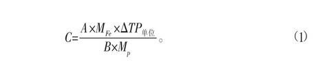 根據PFS和磷酸鹽化學反應式,計算PFS投加濃度C;TP二沉池出口與TP總排放口之差為化學除磷量△TP;C和△TP計算所得理論加藥濃度C理論,并通過實際加藥量濃度C實際進行修正。較終確定TP二沉池出口與精準加藥量濃度C精準的計算關系,見式(1)。